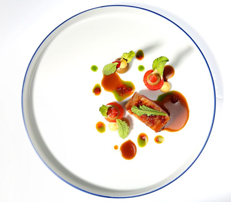 A delectable dish featuring tender lamb paired with paprika, eggplant and miso from the chef behind 2 Michelin-starred Ecco Ascona and Ecco St Moritz.