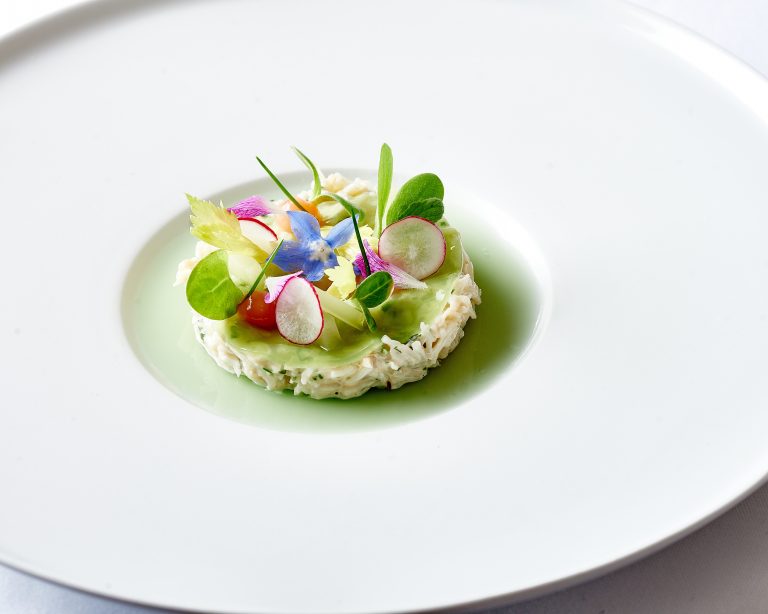 Renowned for his classic yet modern French cooking, this crab dish by Executive Chef of The Bath Priory offers a delicate touch paired with clean