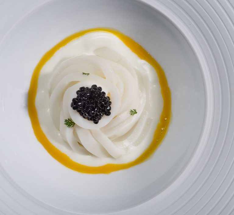 This dish from the mind behind Michelin-starred Inkiostro in Parma reinvents tagliatelle and caviar, using unusual ingredients to create new takes on theses products.