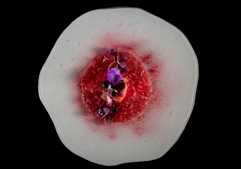 Dig into the flavours of this vibrant pink risotto and prawns courtesy of Italian chef Enrico Crippa, from the Piazza Duomo restaurant.