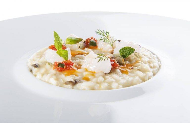 Chefs Alessandro Negrini and Fabio Pisani of 2-Michelin-starred Il Luogo di Aimo e Nadia give the recipe to their luscious risotto with Nocellara extra-virgin olive