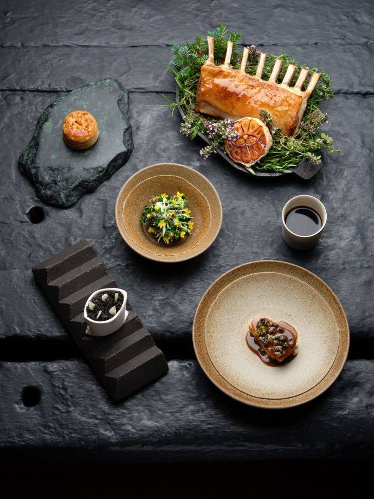 This stellar dish from Simon Rogan features Herdwick Lamb loin that’s been roasted on the bone, served alongside confit leeks, green onion purée, ramson leaves and flowers, crumpets, and a sauce made from the lamb bones spiked with fig leaf vinegar.
