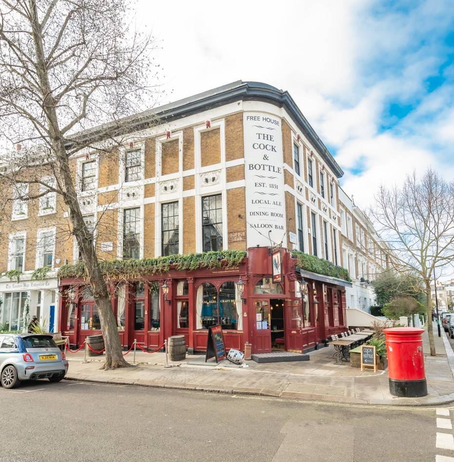 One of West London’s most charming and beautifully restored traditional pubs, The Cock and Bottle offers an array of local craft beers and a solid wine list, all in an inviting setting.