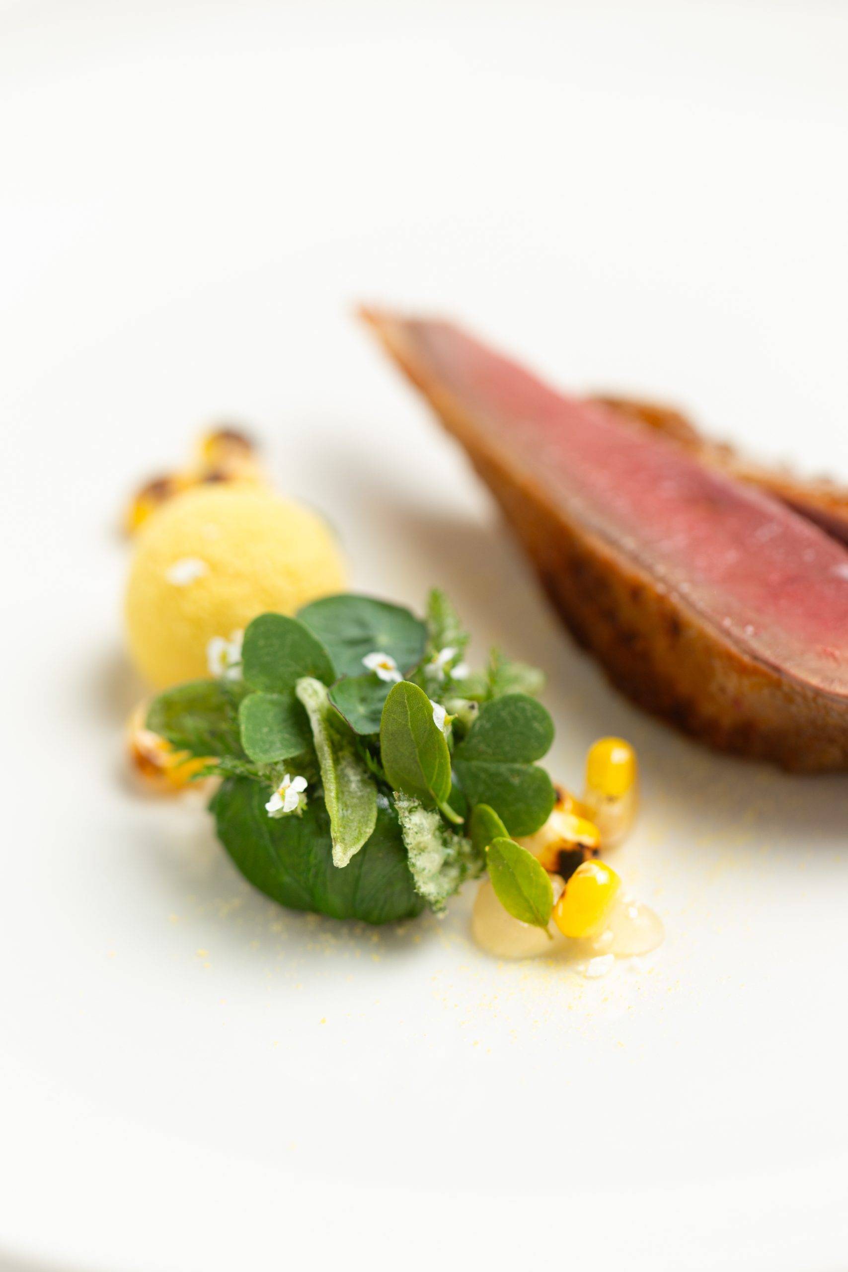 Pigeon from Bresse marinated with baiju, osmanthus and sakura wasabi bonbon © Groupe PIC