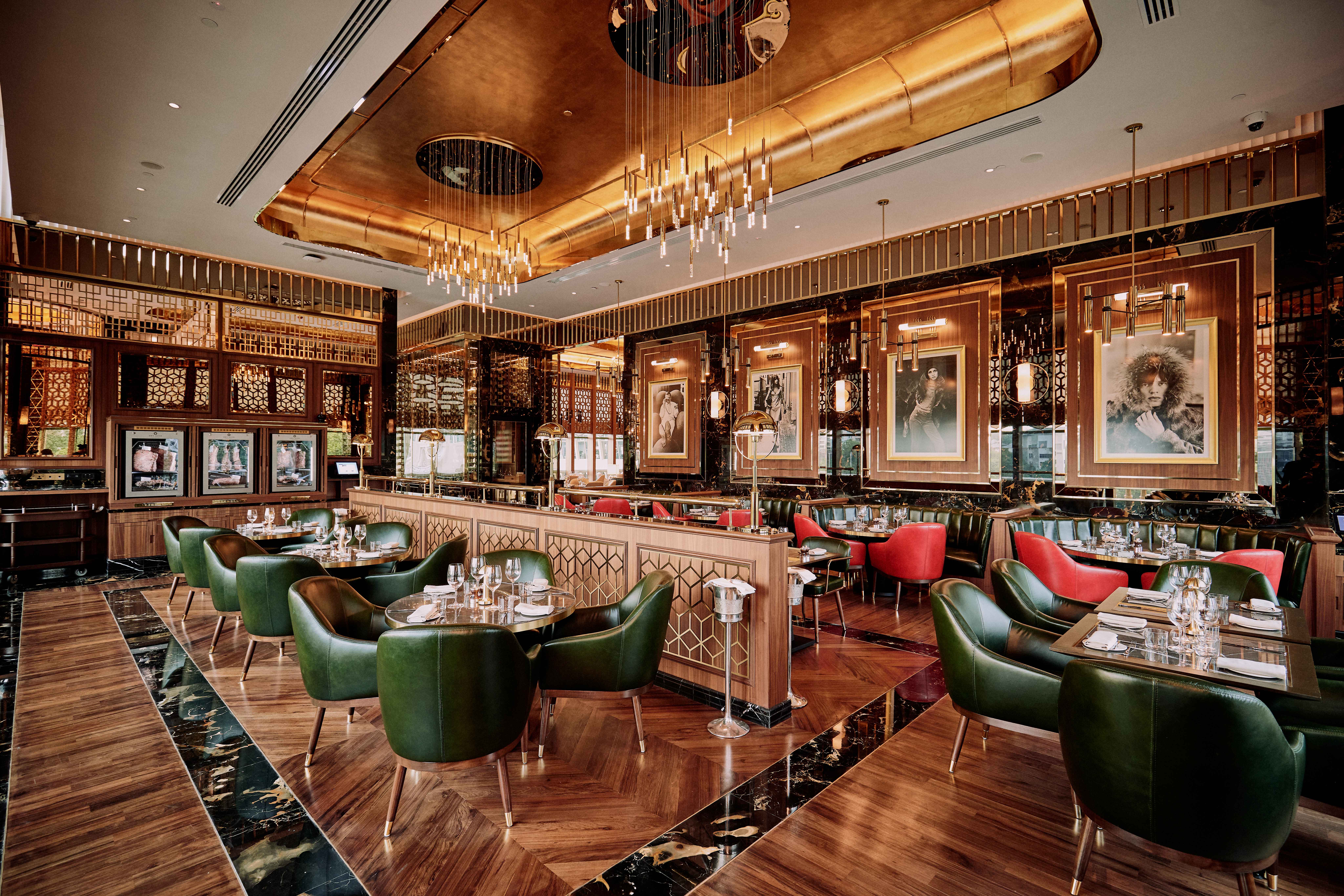 The interior design features robust furnishings with a rich red and forest green colour scheme accentuated by polished walnut hardwood flooring, brass finishes, a 24-karat gold leaf hand-placed ceiling and more. Monochrome portraits of British style icons by celebrated photographers Terry O’Neill and Arthur Steel feature The Rolling Stones frontman Sir Mick Jagger, the original 007 Sir Sean Connery, supermodels Jean Shrimpton and Twiggy, line the walls of the main dining room.