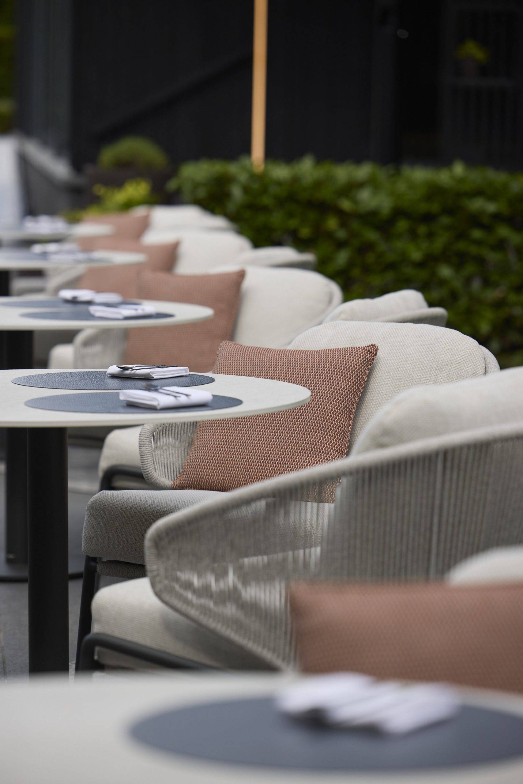 Manutti answered the brief with elegance, furnishing the outdoor space with seven different collections tailored to create moments of calm, comfort, and style. From the Napoli bistro tables and Radoc dining chairs to the Zendo Sense lounge sofas and Sandua lighting, every element was chosen not only for visual harmony, but for how it contributes to the overall rhythm of a meal at Boury.