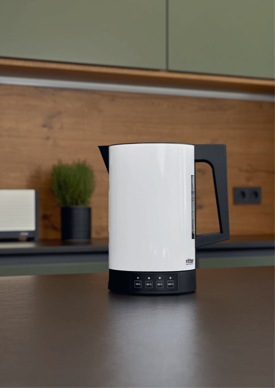 Perfect for tea enthusiasts, the cavita 5 kettle offers four temperature settings, ensuring the optimal steeping times for a variety of infusions. Its Bauhaus-inspired design combines simplicity with practicality, embodying ritterwerk’s philosophy of form following function. This appliance also spotlights energy efficiency with features like boil-dry protection and auto shut-off.