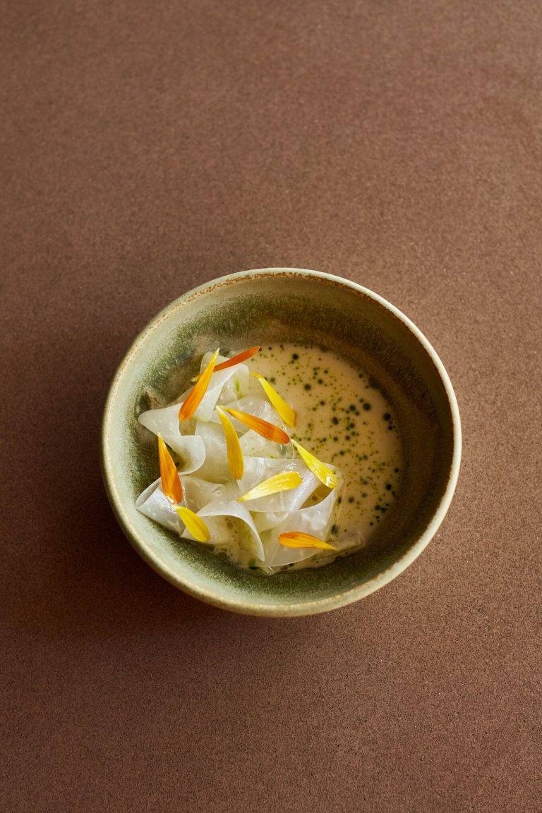 David’s work epitomises this new phenomenon. His cooking and overall inspiration, he tells me, “Is deeply rooted in classical French cuisine,” featuring rich flavoured sauces, tender, cooked-to-perfection meats and soft stewed legumes. “Yet everything is dished and served through a minimalist scandi lens,” he adds, reflecting on his experience of working under 3-Michelin-star Chef Esben Holmboe Bang from Maaemo. The locally sourced produce, as well as his dexterous hands and extraordinary flair, ensure a strong British influence remains.