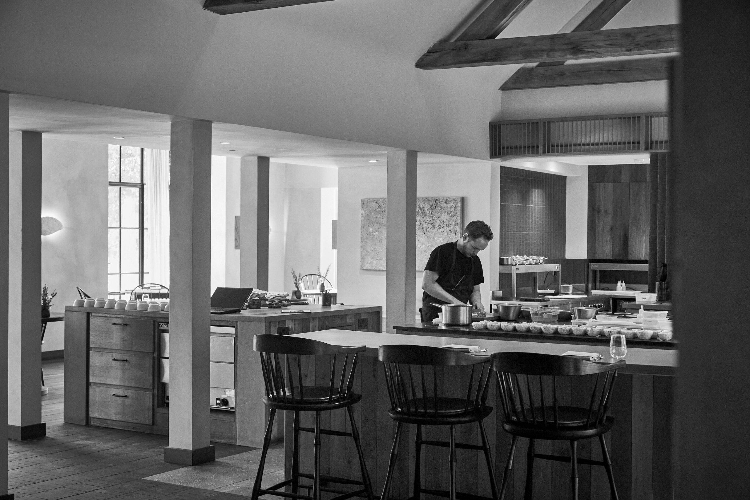 To immerse yourself fully, I recommend overnighting in one of the Garden Suites that offer direct views across the kitchen and sit within the confines of a flowery walled garden. Design-wise, the rooms offer warm, minimalist vibes that feature locally sourced products and natural materials. I’m told by Creative Director Fjona Hill, “The overarching theme is British wood-craftsmanship, ” adding warmth to the room. Expect remarkable and original touches, too, with your typical Nespresso machine substituted by a vintage coffee grinder and speciality coffee beans, which makes for a very fun experience in the morning and a cool feature.