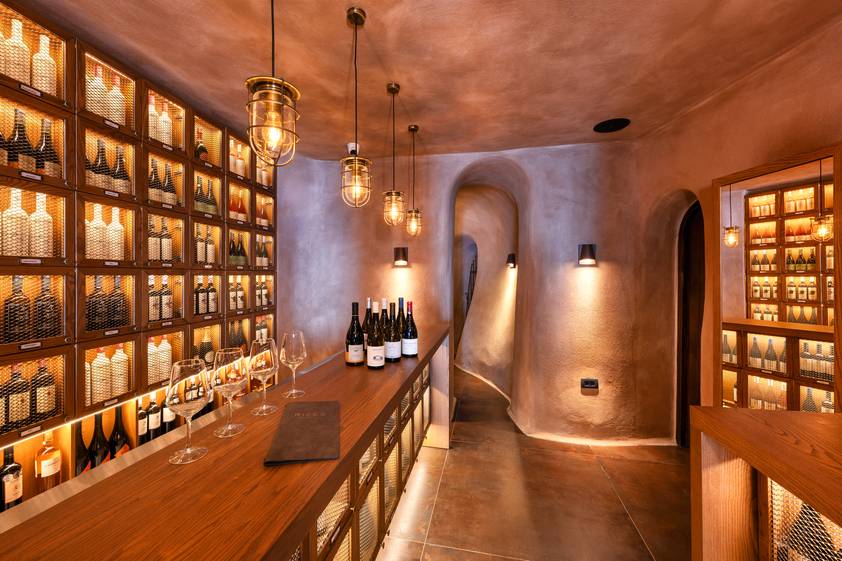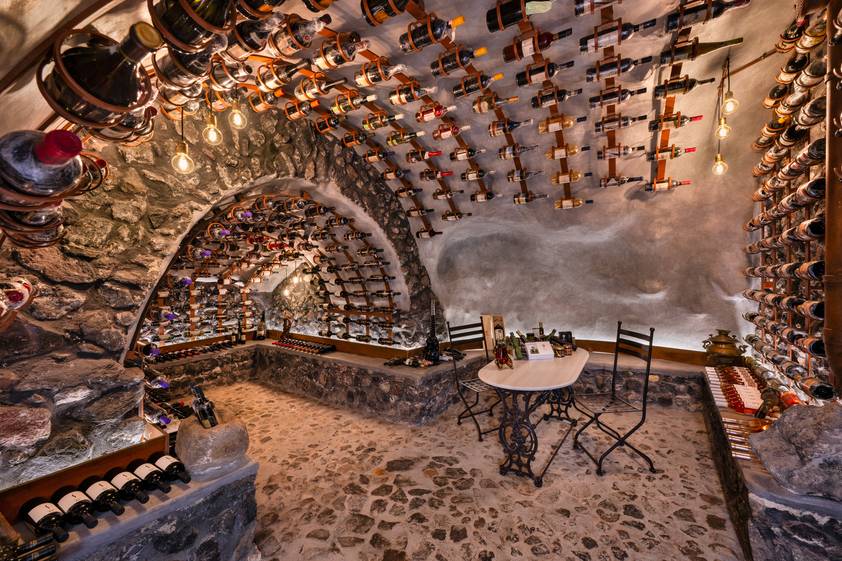 Now restored and curated, this space holds aged Vinsanto and Nykteri from boutique local producers, rare Bordeaux vintages, and Italian treasures with decades of character—the ideal atmospheric setting for private tastings, pairing dinners, and intimate celebrations that bring together the island’s past and present in every glass.