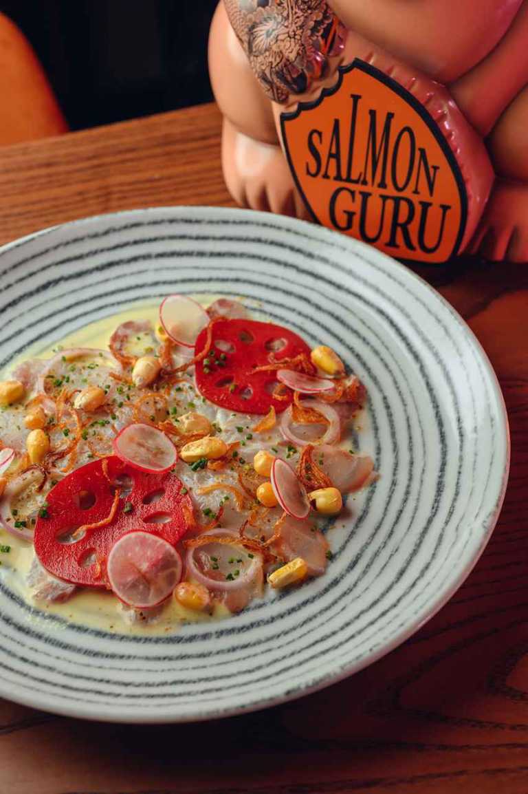 I believe the elements that have led us to success are those highly valued by our customers. One crucial aspect is the care we put into designing the environment. Upon entering Salmon Guru, every detail is meant to invite you to relax and disconnect. Equally significant is our unwavering commitment to hospitality. It forms the very foundation of the Salmon Guru concept. Additionally, everything you savour — be it food or drink — is daring, fun, and designed to shatter preconceived notions. In every direction, you’ll encounter beauty, friendly faces, and a delightful array of flavours, creating an atmosphere of pure enjoyment!