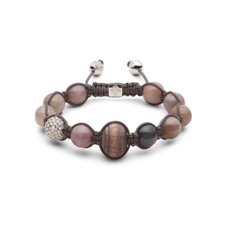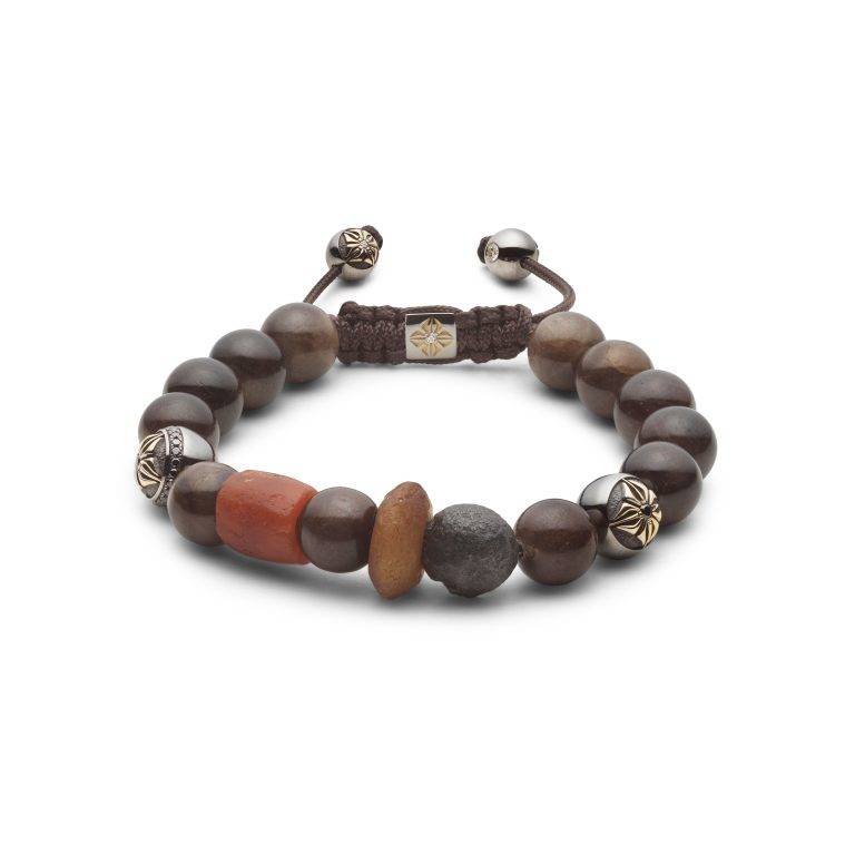 The Striped Symbiosis SHAMBALLA® Bracelet (above right) highlights a lenticular carnelian bead from the ancient Indus Valley civilisation, with minor flaws that make it authentic and deeply resonant. It’s an ode to the fallible journey of life and the beauty inherent in imperfection.